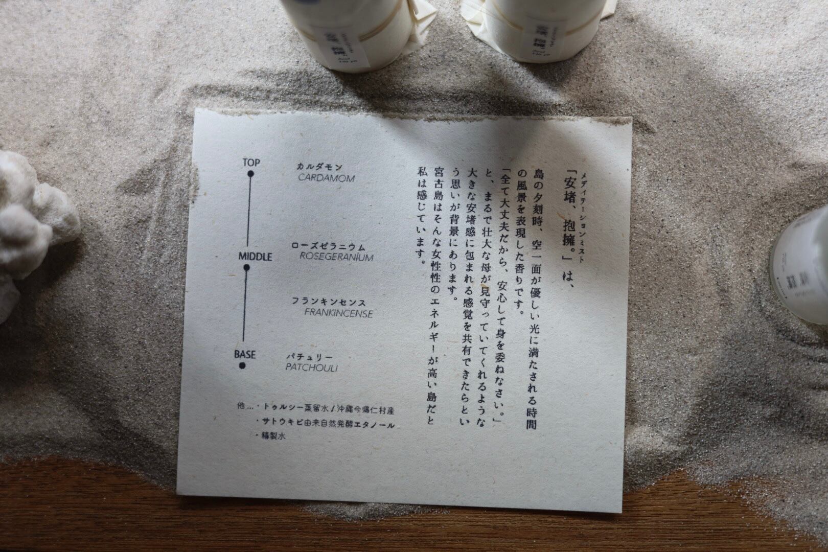出身地-沖縄や宮古島の素材をアクセントに生み出す香りデザイン。